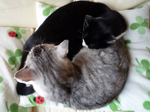 クッション(座布団?)のカバーも暖かネル仕様になって、お母ちゃんの防寒対策は万全で、みっちゃん・しまちゃんヨカッタね~っ♪
