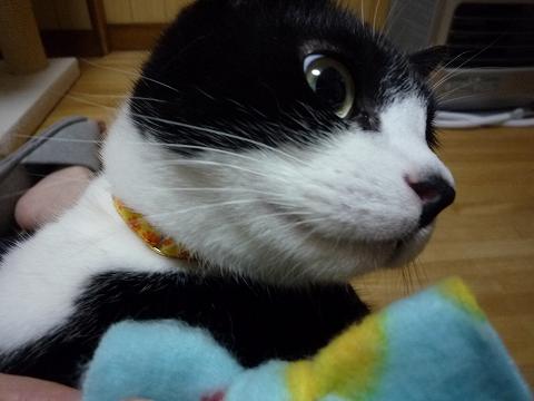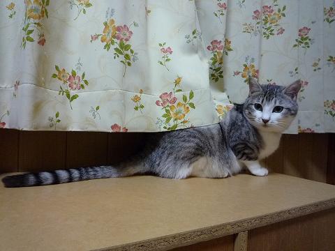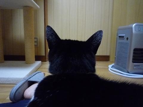 窓から外を偵察(夜ですが…)して戻ってきたところ(笑)