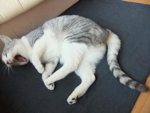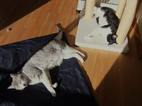 ハチワレのほうが“みつ”、縞々のほうが“しま”という名前です。