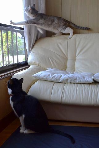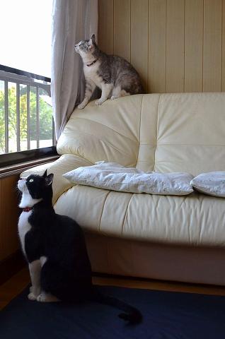 外の鳥や虫が気にニャって仕方がニャんだろうニャォーっ♪