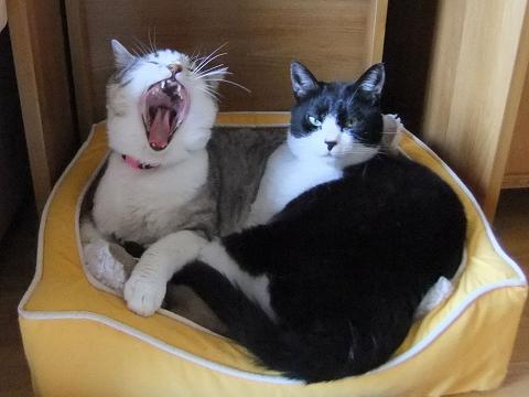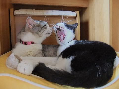 こんにちは~アクビの競い合いですか?勝負は、引き分けですね。つまり可愛さも引き分け♪ この光景こそ幸せ一番!!